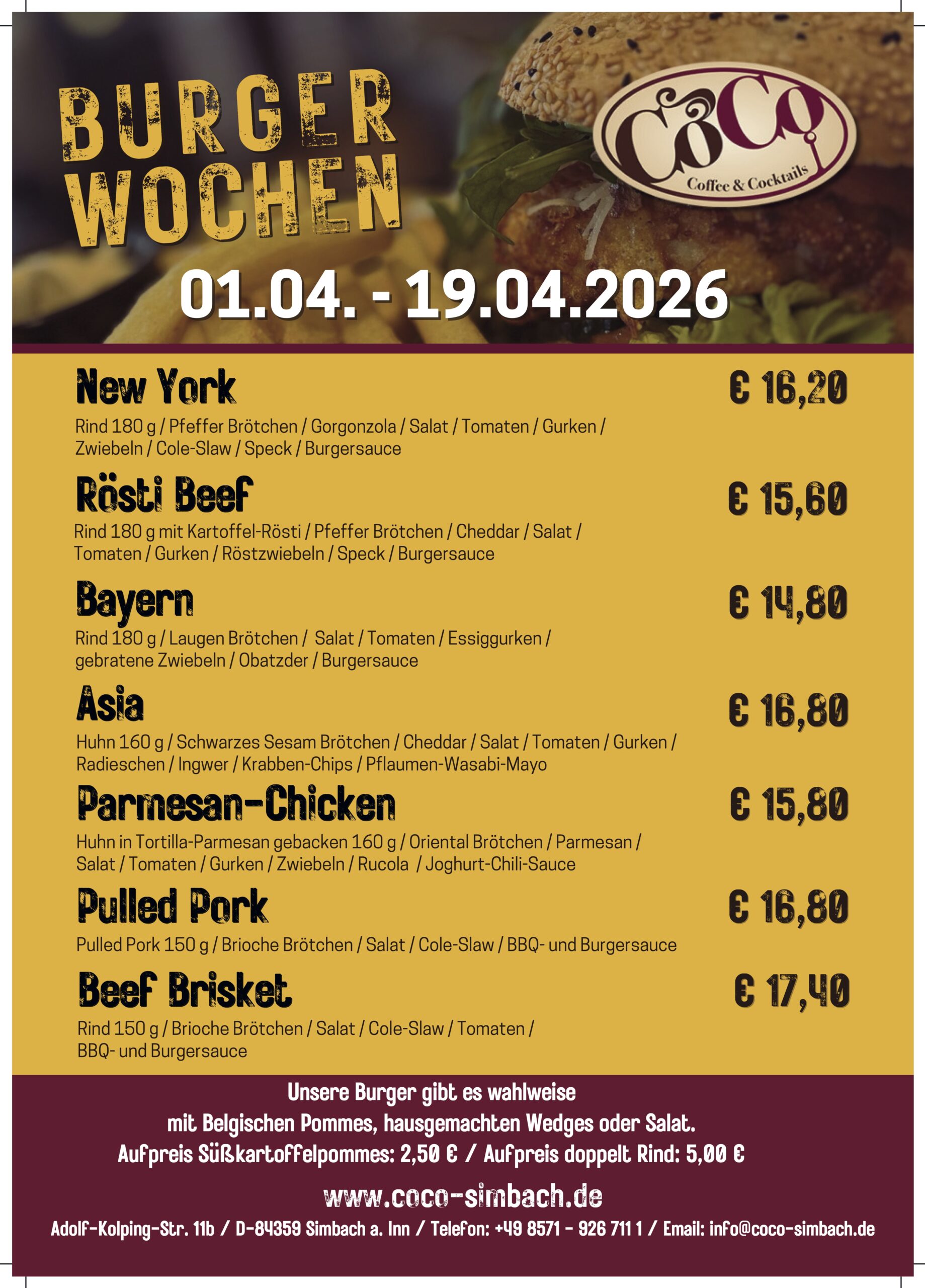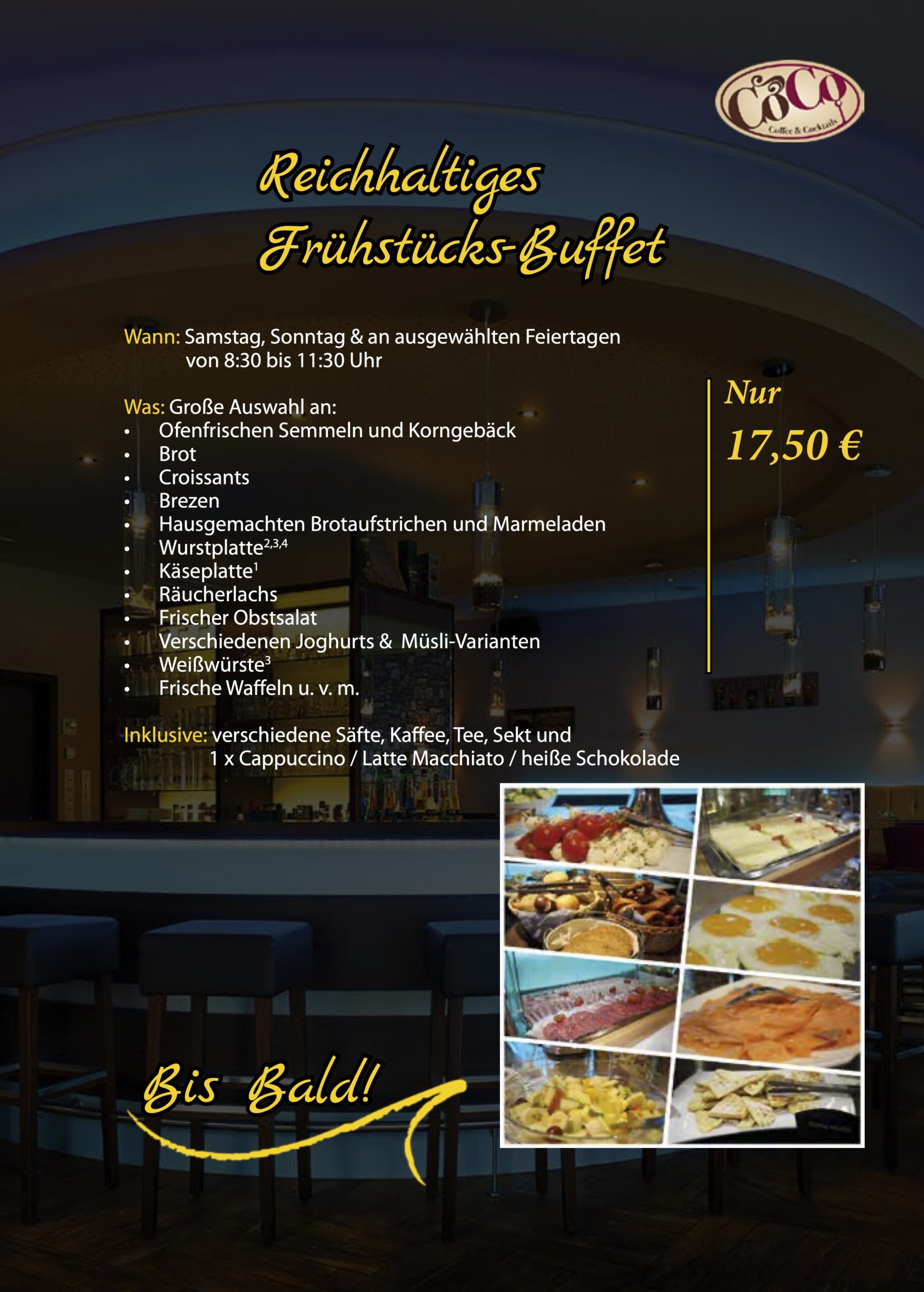 • Samstag: 08:30 Uhr – 11:30 (Frühstück) und 17:00 – 02:00 Uhr